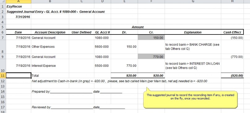 Suggested Journal - Bank Reconciliation: bank reconciliation software